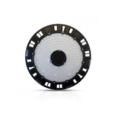 Référence8005890Finition extérieureNoirLumens16500Puissance absorbée150WDimmableNonTempérature de couleur6000KCouleur de la lumièreBlanc jourIndex de reproduction chromatique (IRC)Plus de 80Angle ouverture115°FormeUFODimensions (Ø x H)Ø365 x 190 mmDurée de vie théorique de la LED30.000HCaractéristiquesClasse ITension220/240V ACMatériauxPC + AluminiumCertificationCE / ROHS / EMCProtection IP65Protection IK08Poids Net3,94KgEmballageBoiteCode barre3701124412805
