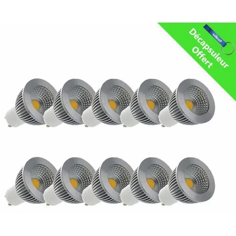 LOT 10 x Spot LED COB 6W (55W) GU10 Dimmable Angle 80° Blanc jour 4000°K