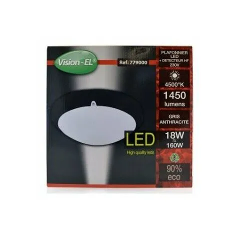 Plafonnier LED Hublot avec détecteur RF – 18W- ø 296mm – 4500K – Gris anthracite mat de Vision-EL.