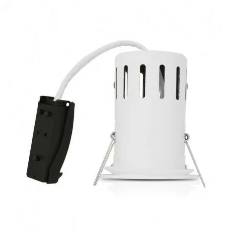 Livré avec une douille GU10 CL2 et un connecteur électrique automatique (pas de vis) avec double connexion pour un montage en parallèle (arrivée pour le spot et départ pour le spot suivant)